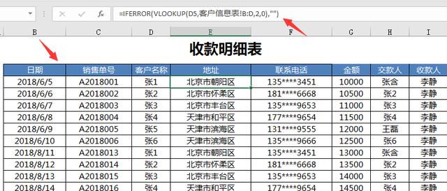 收款明细表为日常记录表,逐项填写(其中地址、联系电话自动生成无需录入)。